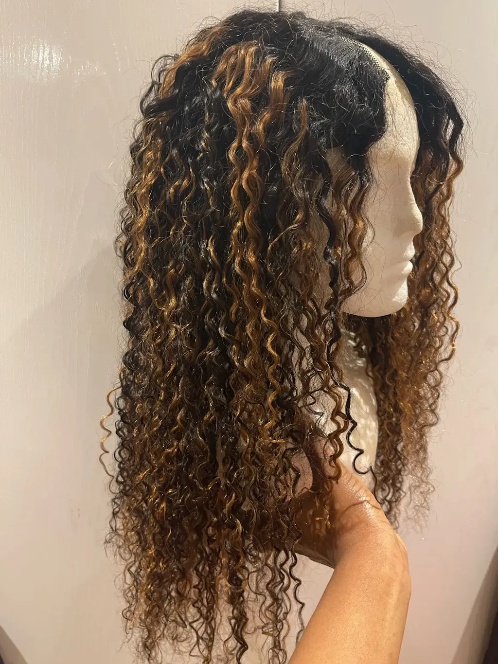 Glueless Jerry Curly New U Part Ombre Wig With Blonde Highlights